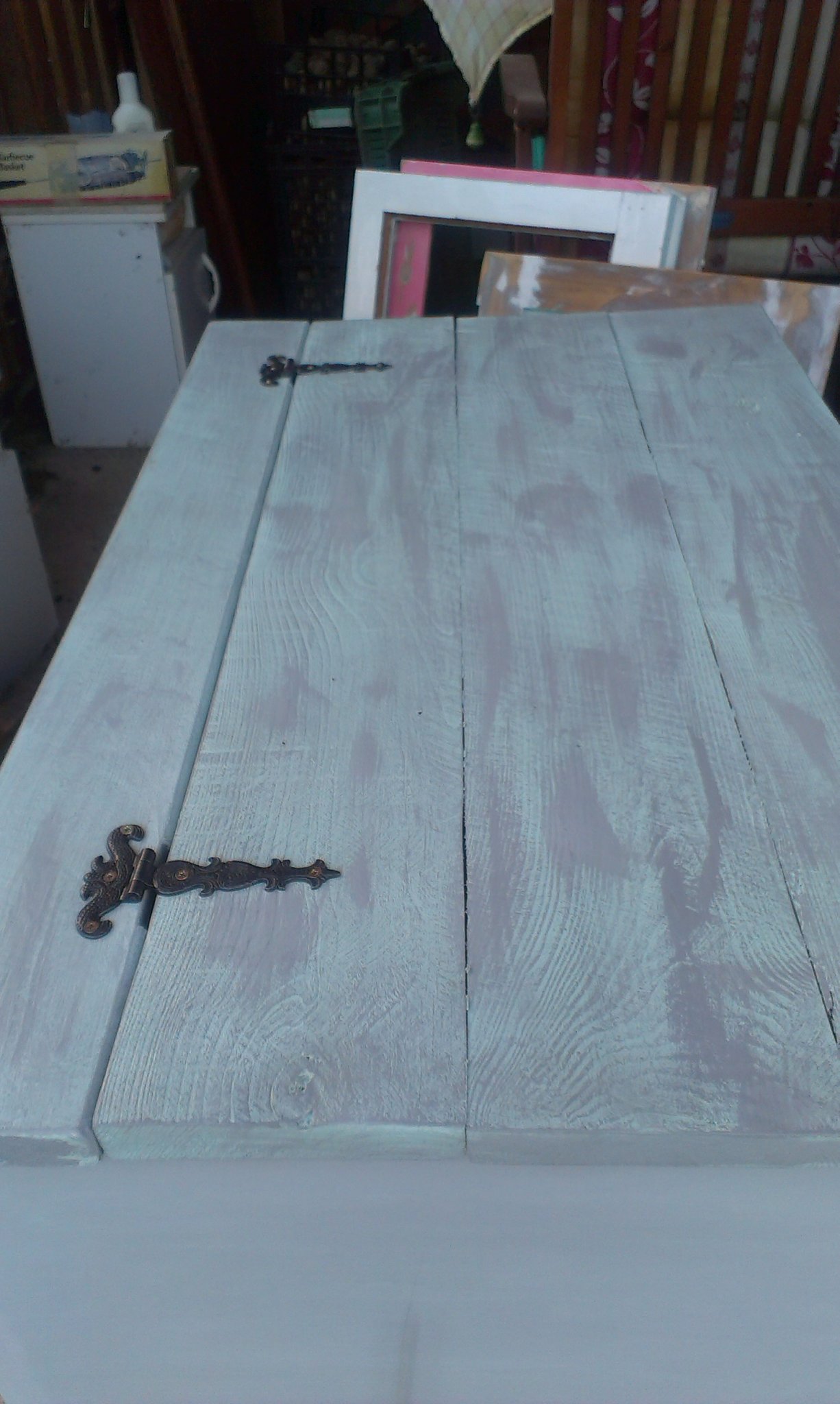 Valamivel szerettem volna “öregíteni” is, de sajna ez bútorlapból készült és nem fából, így a visszacsiszolás szóba sem jöhetett. Találtam otthon lazúrt és gondoltam összekenem kicsit (ez a maszatolós téma nagyon tetszik). Így nézett ki másnapra:
