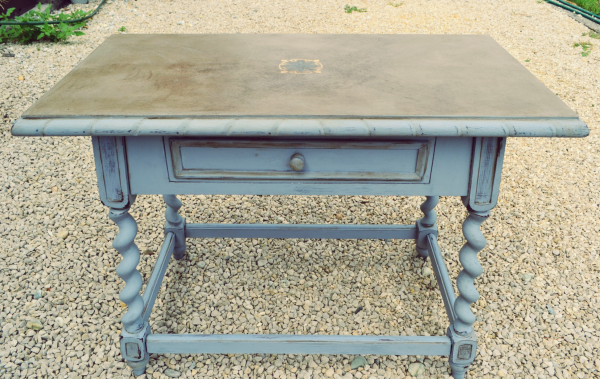 Festeni elég volt két rétegben, bár mire a csavart lábait lekentem…………… és persze a földön hasalva, mert nem volt semmim, amire rátegyem (szegény ember vízzel főz)…………. szóval örültem, hogy csak négy lába van na! Az eredeti tervem az volt, hogy az egész sötétre lesz vakszolva, de a párom lebeszélt, aztán én is magamat… így csak az asztal lapja kapott teljes sötét réteget.