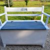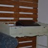 Egy régi sámlin mutatom a próbát. Jó vastag fehér festék volt rajta, ezt lecsiszoltuk a natúr fáig: